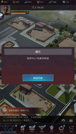 指挥中心达到7级可解锁联盟、地图等功能,加入或创建联盟能与盟友协作争夺领土、资源,需尽快升级指挥中心开启该功能。