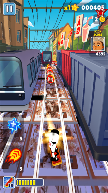 2、超刺激的游戏体验,躲避障碍物和追赶者,跳过高墙和地铁轨道等。