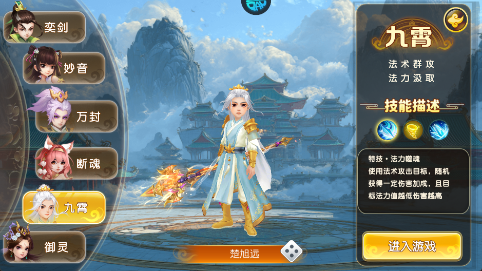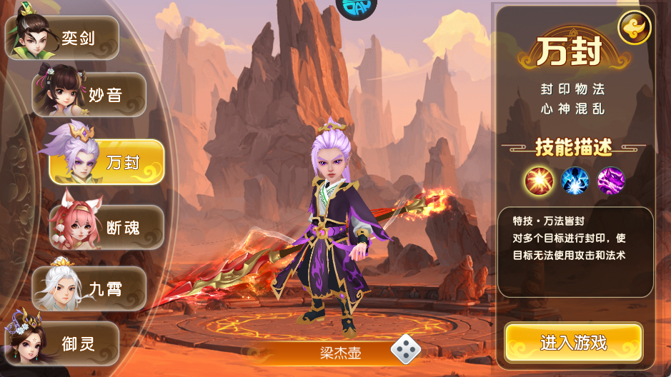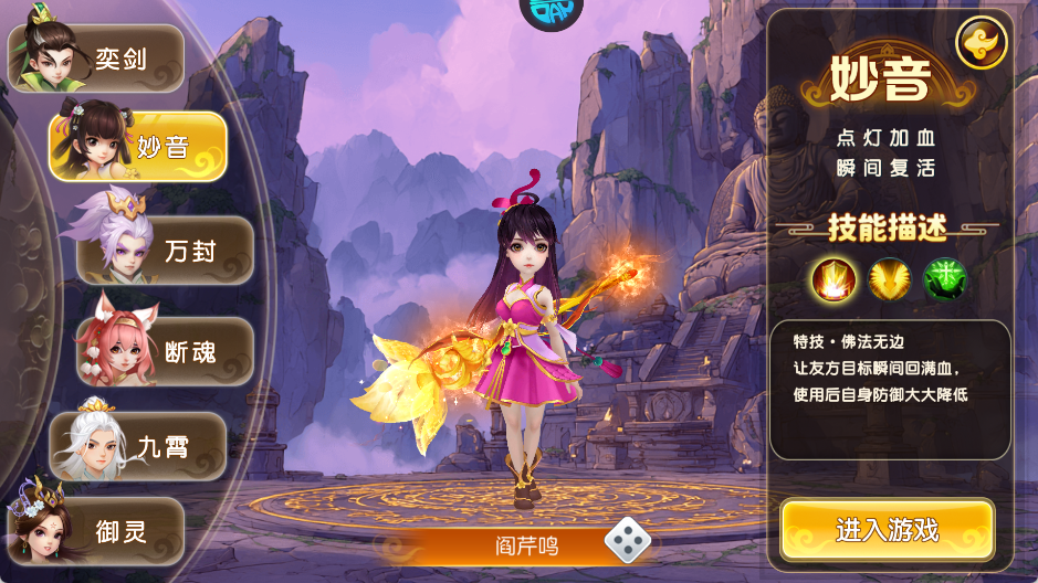 游戏共有六个职业,每个职业都有独特的定位和特技。比如“奕剑”以物理点杀为主,能隐身狂攻;“妙音”则擅长加血复活,关键时刻能逆转战局。其他职业如“万封”、“断魂”、“九霄”和“御灵”各有特色,涵盖了输出、控制、辅助等多种玩法。