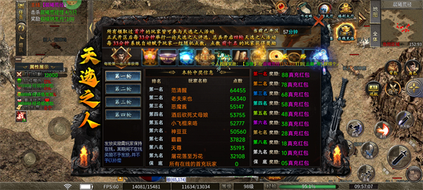 所有领取过首冲的玩家皆可参与天选之人活动,正式开区后每33分钟举行一论天选之人评选,总共开启四轮天选之人活动每33分钟系统自动赋予玩家一组随机点数,点数前十名的玩家获得奖励【奖励可获得真实红包】。