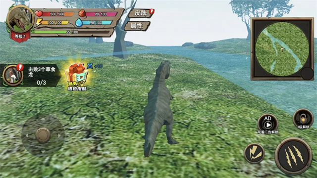 2、在这个残酷的世界,你将扮演一只霸王龙去击败比你更弱小的生物
