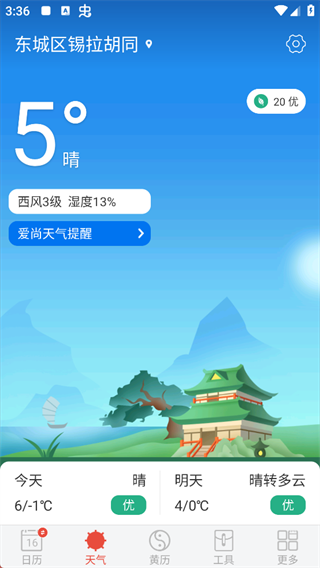 根据定位显示你当地实时天气、风向湿度及未来天气趋势,提供天气提醒服务。
