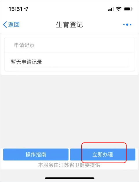8、信息提交成功后,可在生育登记页面查看申请记录,等待审核通过即可。