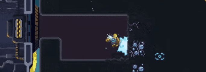 至于打boss,很明显我们需要攻击他肚子上那个蓝色小球,但是初始机枪抖的一批还得兼顾清怪,所以打boss其实要靠家里升级的那个 按1键使用的技能导弹 ,导弹会优先锁定高威胁目标。