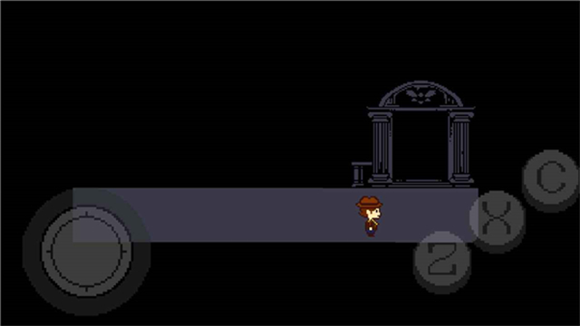 5、跟随Toriel到达遗迹入口,途中遇到第一个保存点(星星)。Toriel告诉你这里将是你的新家,并亲自解决了一个房间谜题,让你得以通过北面的门。接着,你们来到一条东西向的长廊,Toriel让你拉下两个有标记的杆子,移除了东面的尖刺陷阱。