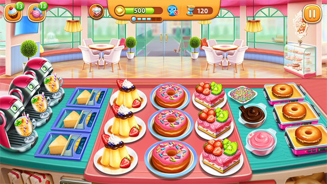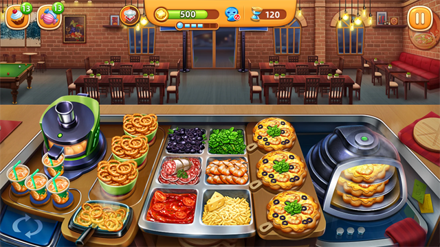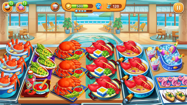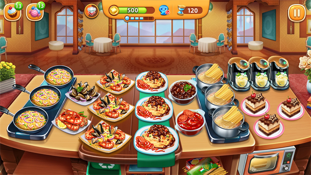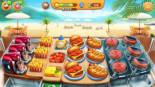 汉堡、薯条、披萨、寿司、麻辣烫、北京烤鸭……在特色主题餐厅的厨房中展现您的烹饪技巧。当然,别忘了升级你的食材和厨具。升级食材会让菜肴看起来更加美味,增加您的收入!高级的厨具也会让烹饪更加得心应手!