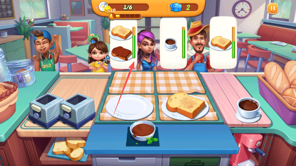 6、每位顾客都有耐心进度条,你需要在玩家耐心消耗完之前制作出他们所需的食物