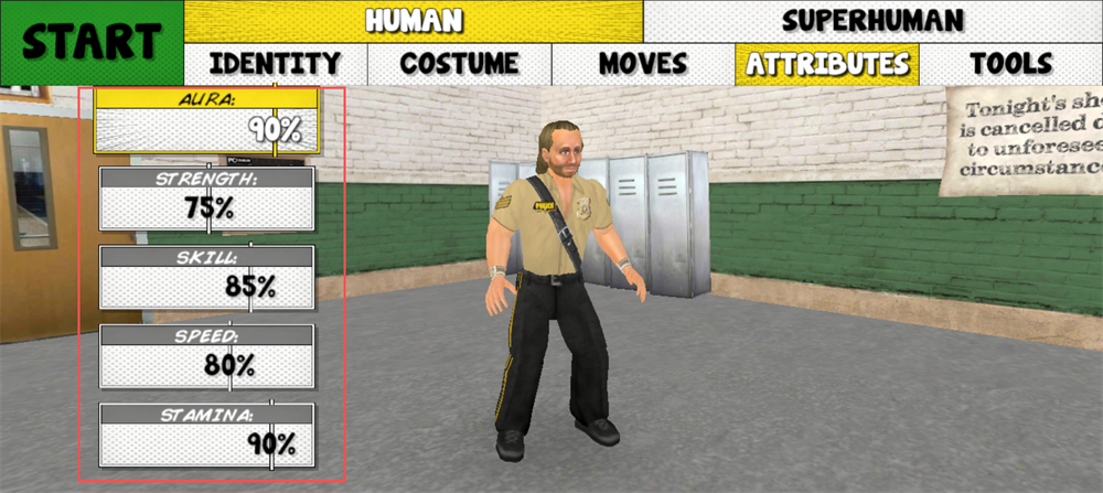 4、调整好角色的各种属性后点击start
