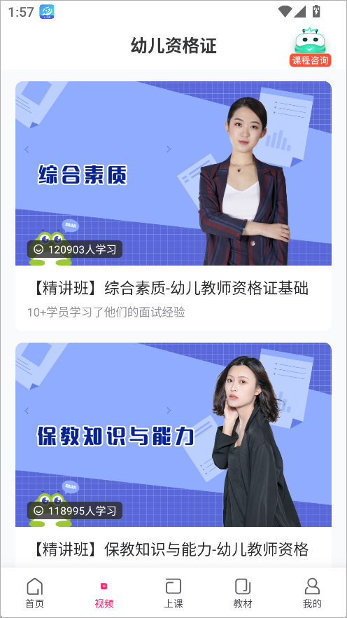 功能方面,首页提供最新考试资讯和热门课程推荐,方便考生及时了解动态;视频模块汇聚名师讲解和历年真题解析,支持倍速播放和离线缓存;上课模块可进入直播课堂或观看回放,实时互动答疑让学习更高效;“我的”模块则帮助用户追踪学习进度、错题收藏等。此外,App还提供官方教材电子版购买服务。