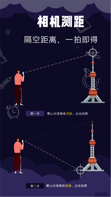 测距测量仪是一款非常实用的智能测距软件。软件给测量工程的用户提供一种便捷测量距离的方式,即使没有随身携带物体测量仪,也可以通过手机软件进行距离测量。软件采用3D摄像头测量,利用实景进行测距,只需要录制物体的长度,它就能智能计算出与物体的距离。软件功能强大而且齐全,具有生活中各种各样常用的测量功能,支持高度测量,直尺,量角器,噪音计,海拔测量等等。非常实用的量角器功能,可以实时显示度数,并进行360°无死角测量,简直是建筑师、木工的必备工具。