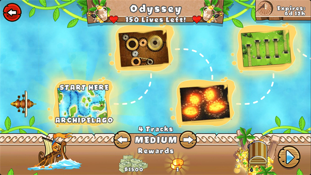 分别建造炮塔、冰冻塔、胶水猴,在10级的时候可以参与挑战模式,目前有2个挑战,一关有50个MOAB,另一关则只能用5个防御塔通关,很简单,一下就过了。