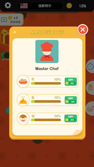1、时间速度的加快:最为实在,加快顾客就餐速度加快金币获取速度。
