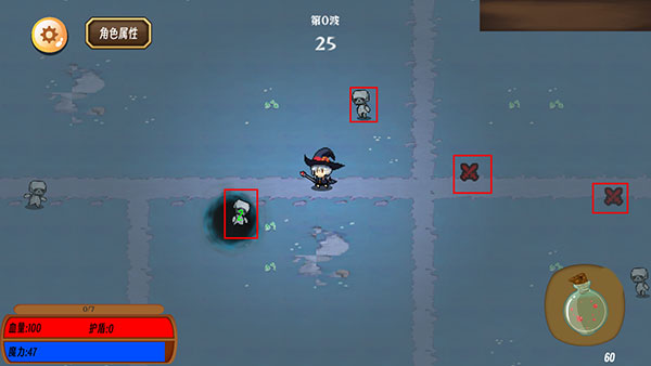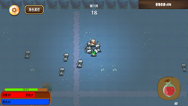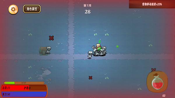 6、敌人会越来越多,靠近你后血量会减少,并且周围出现红色,此时可以利用右边的药水恢复;