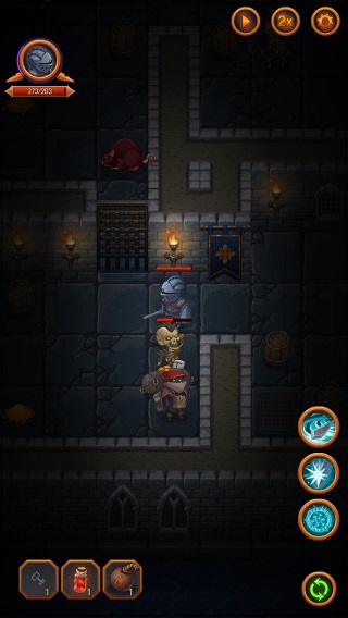 游戏结合了多种游戏玩法:RPG、地牢探险、roguelike,配合游戏丰富的装备系统大大增加了游戏的可玩性。关于游戏的实际操作,只需单指点击即可!