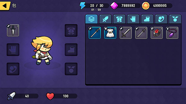 10、返回游戏主界面,我们可以穿戴不同的装备提升角色的属性,在关卡中可以更快地通关,以上就是跑切跑游戏的玩法了。
