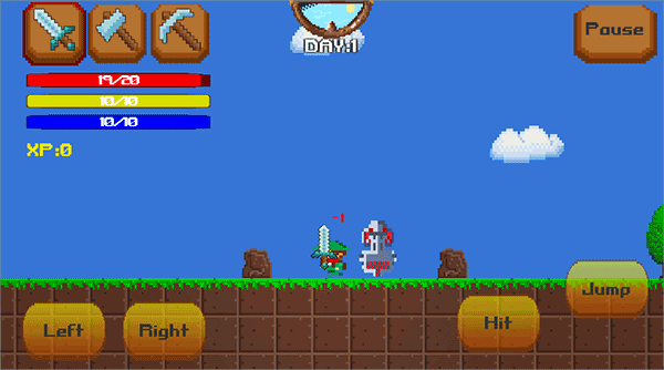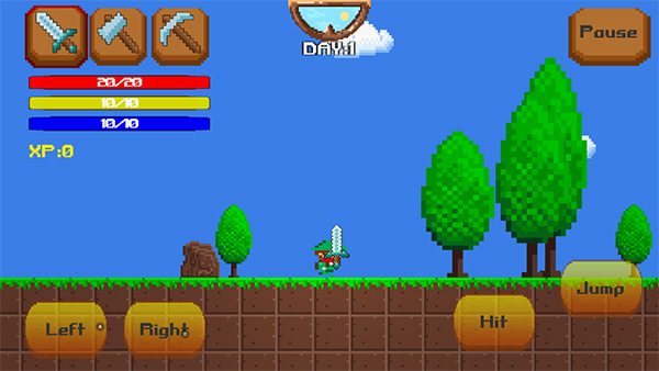像素生存冒险是一款非常有意思的横版冒险手游,该游戏轻松易上手,让人玩起来能始终保持愉悦的心情。游戏采用的是像素的风格,这在以往的横版的游戏中是比较少见的,玩家可以选择多个不同武器进行玩耍,这些武器的作用各有不同。同时为了增加游戏的乐趣,游戏还设置有早上和晚上2个时间段,让玩家能够真切的体验到昼夜循环的魅力,游戏内容很多,玩家的操作却很简单,只需要左右移动就行,简单的攻击方式配合简单的游戏流程,实在是茶余饭后的一部好的休闲游戏,大家感兴趣就快来下载体验吧!