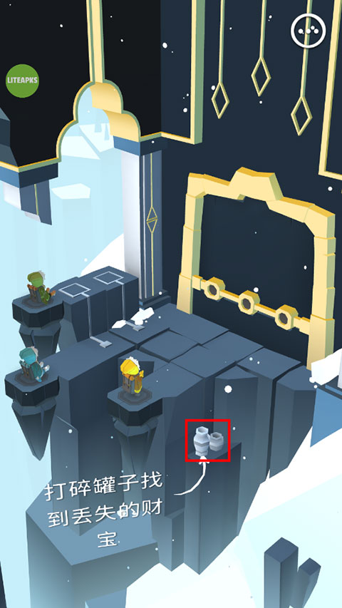 如果想切换中文语言,可以先点击SETTINGS,再选汉语就行了。玩法方面,主要是操控三个探险家互相配合,有时候要搭人梯才能上去,或者需要其他人帮忙下来,还有打碎罐子找宝藏,最后连块颜色方块就能通关了。