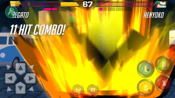 2、通过自己控制虚拟按键来操作人物进行攻击,然后拥有l、h、s、x四个攻击按钮,通过不同的组合便能打出完全不一样的效果。