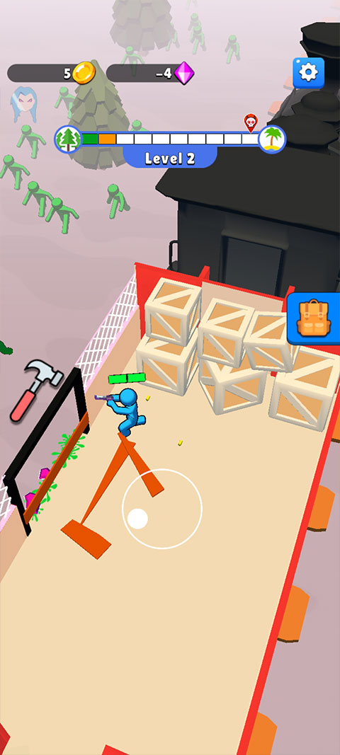 1、在末世中尽情与丧尸战斗,如果丧尸不能成功入侵火车,可以随意用各种武器射杀它们。