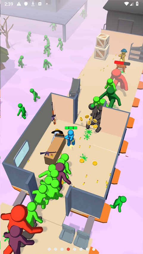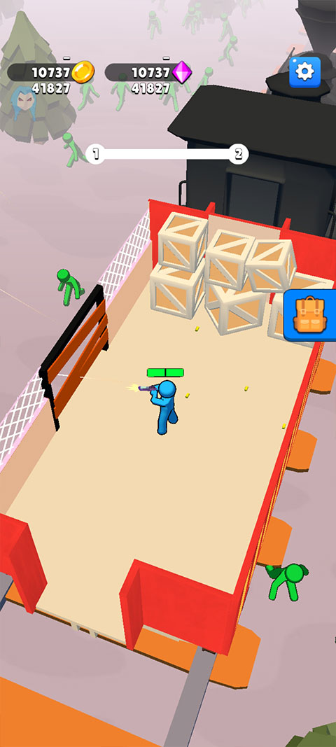 这个游戏的核心玩法就是在火车里打僵尸。听起来很简单,但其实还挺有挑战性的。你控制的角色可以在列车上跑来跑去,用各种武器射击涌进来的丧尸。地图里有很多武器可以捡,每次射击都能带来不一样的感觉,挺解压的。