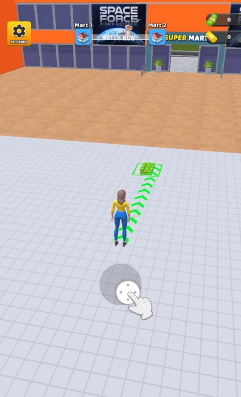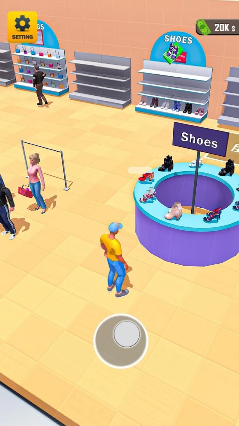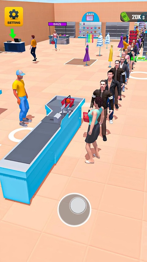 1、拖动屏幕中心的虚拟摇杆,操纵售货员进行移动。