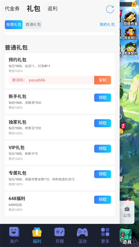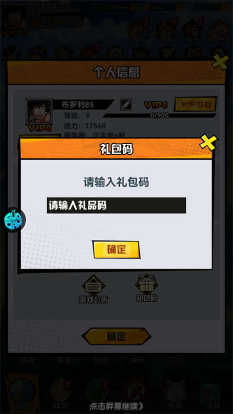 1、进入游戏后点击首页悬浮球,领取礼包兑换码