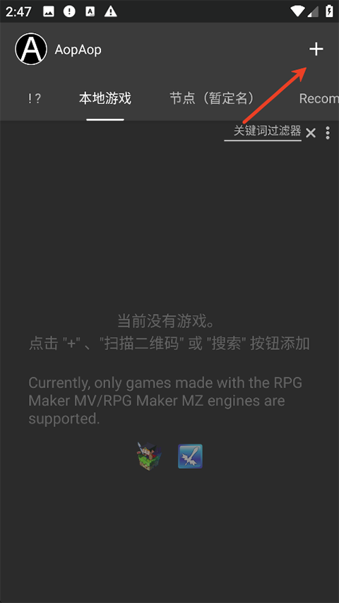 1、首先打开AOPAOP模拟器,点击右上方的加号,找到游戏文件夹。
