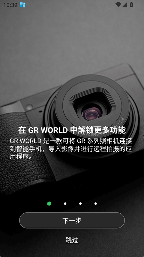 打开手机上的 理光 GR WORLD 应用程序,并点击连接相机的选项开始配对。