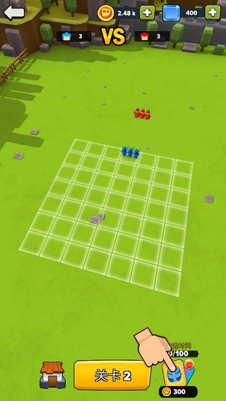 首先,战斗开始,玩家可以在指定的方格内部署兵力,虽然该游戏是作为一款单机模拟策略游戏存在,但可体验的玩法有很多,棋盘格局,不仅能够自由部署兵力,还能通过闯关来叠加资源。