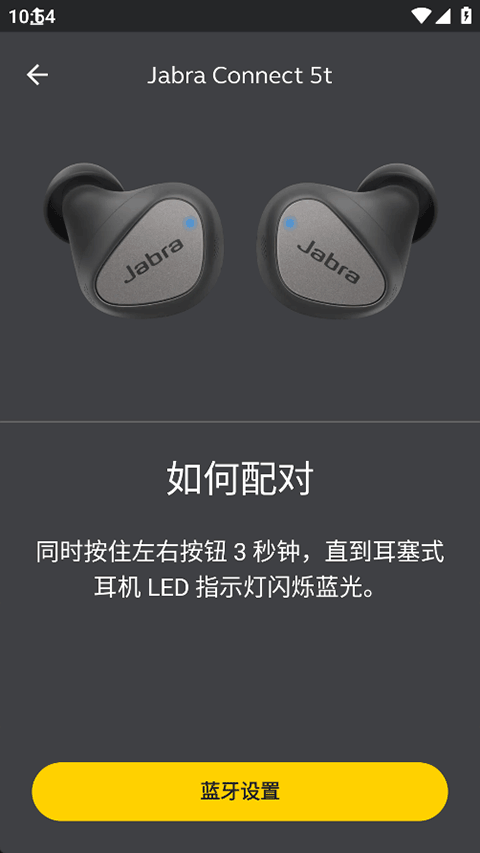 1、首先,确保您的 Jabra 蓝牙耳机已充满电,并将其置于配对模式(通常是长按耳机或充电盒上的按钮)。