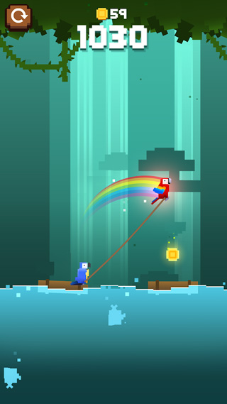 4、触屏控制跳跃距离,把握两种动物之间的绳索长度;