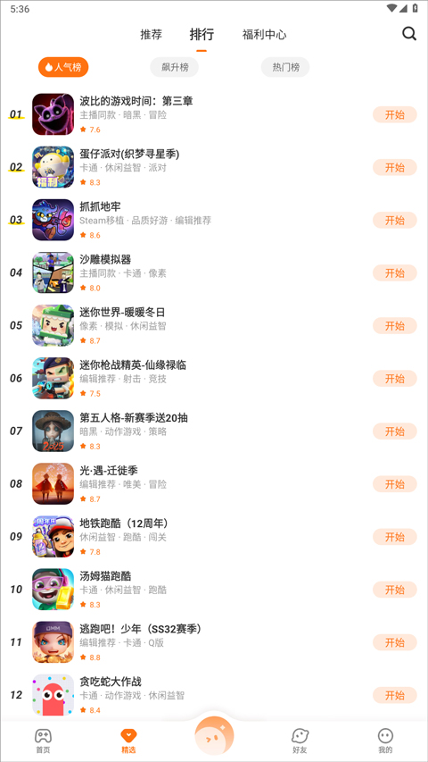 4、不管你是想体验近期热门的小游戏之外,还是想看看下载次数最多的游戏,都可以通过排行榜进行查看。