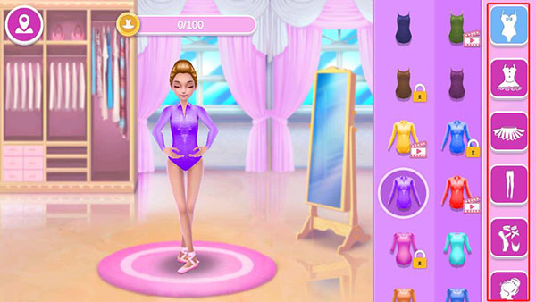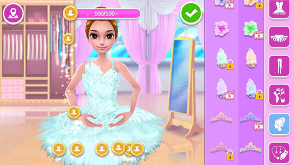 总的来说,这是一款适合女生放松娱乐的游戏,既能体验芭蕾舞的魅力,又能自由发挥自己的创意。画面温馨,操作简单,让人爱不释手。如果你喜欢换装和创造角色造型,这款游戏绝对值得一试!