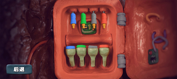 5、接下来就是让机器人Po进入到洞中,将插头插入到对应的颜色当中,左边的红色线路变亮就表示成功了。