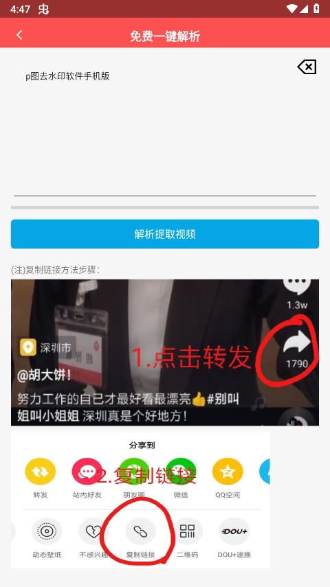 2、把你想去水印保存下来的视频链接复制到下面的文本框中。