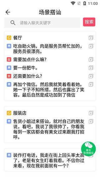3、例如,进入场景搭讪:有各种事例供用户参考,也可在搜索框中输入关键字进行查看;