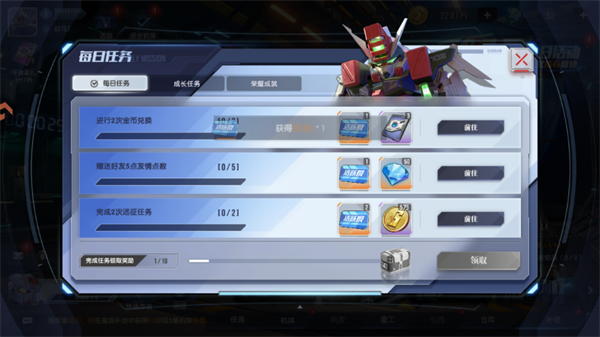 优先完成主线任务,因为主线任务是获取大量经验的主要途径。首次通关主线任务时,可以获得基础经验加上50%的加成。例如,当大家完成第5章的主线任务后,会解锁“紧急任务”模式,这个模式下,单次经验收益可以提升至常规关卡的1.5倍。在进行主线推图的同时,大家可以同步接取日常任务,比如使用指定类型的机体过关,这样可以同时完成“类型挑战”任务,从而节省体力消耗。