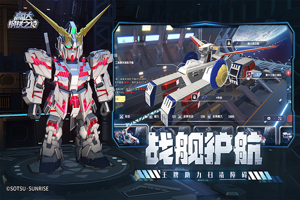 《高达钢铁之诗》作为国内首款3D制作的SD高达手游,制作组在建模、画面、特效等多方面下足了功夫。格纳库的每台机体都支持360度无死角展示,精细打磨机体的立体金属质感,同时以高质量的渲染效果加持,带来主机般的游戏体验。