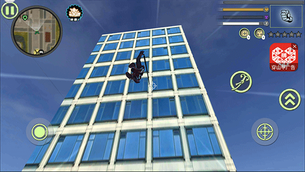 1、玩家们可以利用绳索来在各种高楼之间飞荡,体验自由的感觉;