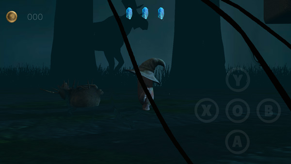 3、进入游戏后如图,左边控制移动,右边Y键为旋转攻击,A键为跳跃,B键为下蹲爬行;