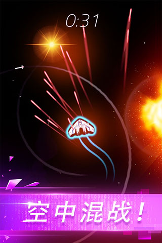 1、滑动屏幕控制战机飞行,躲避敌人的撞击和子弹