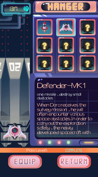 4、获得的能源可以进行购买新的飞船,购买飞船需要满足一定的通关条件