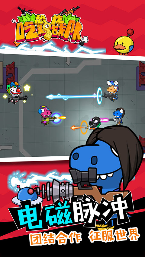 恐龙吃鸡战队官方正版是一款以恐龙为主题的吃鸡类2D游戏,玩家即将迈入卡通Q版的恐龙世界,与好友组建自己的恐龙战队,在战场上与其他玩家展开激烈的射击竞争。恐龙队员们穿上各种卡通恐龙套装,配合强劲枪支,再带上可爱的宠物,一起蹦蹦跳跳进地图,这轻松愉快的气氛,让玩家畅享欢乐对局。