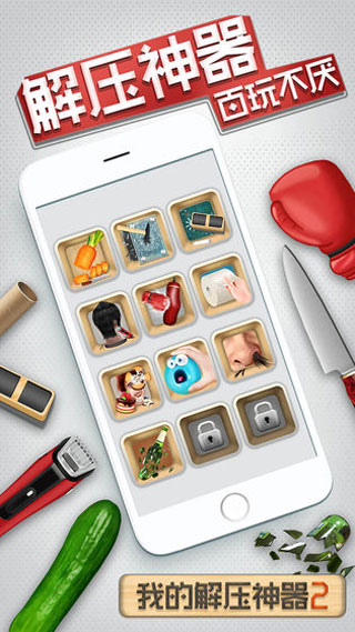 我的解压神器2是专为放松解压所打造的一款休闲益智游戏,游戏画风恶搞,玩法非常的无厘头,包含打沙包、切蔬菜、拔鼻毛、擦黑板等十二款独立小游戏,每个游戏玩法自成一派,清幽静谧的背景音乐,极具代入感的玩法效果,是大家生活中释放压力,放松心情不二之选。尽管游戏难度不大,玩法也比较普通,但不可置疑的是可以让你从烦闷的日常工作生活中释放自己,逃出生活对我们的重重逼迫,在生活之余拥有另一番快乐。