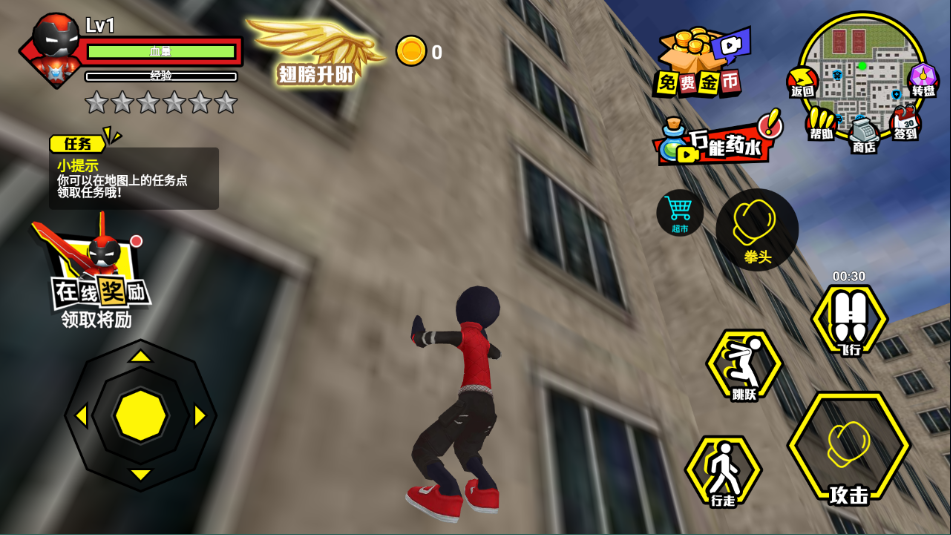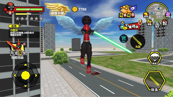 6、绳索英雄可以飞檐走壁,还可以使用右侧的飞行模式30秒