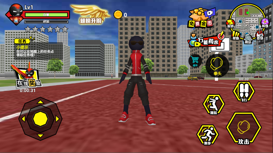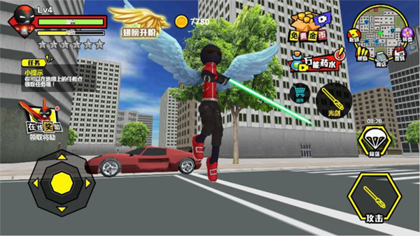 2、自由穿梭城市,进行冒险和闯关,体验刺激的游戏挑战。