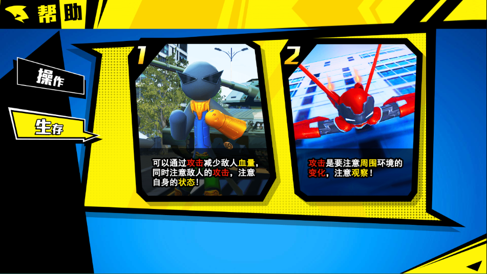 3、游戏生存,可以通过攻击减少敌人血量同时注意敌人的攻击,注意自身的状态!攻击是要注意周围环境的变化,注意观察!