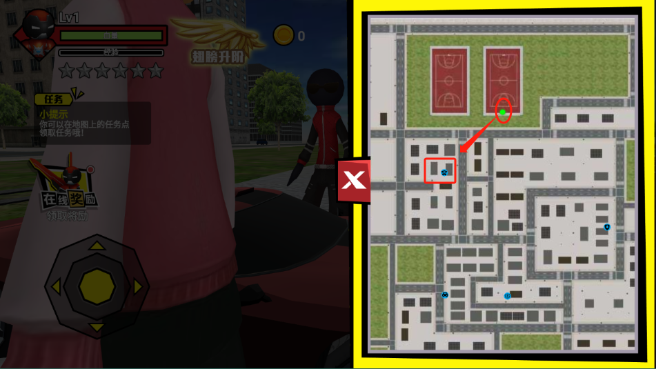 4、任务提示:可以在地图上的任务点领取任务哦!