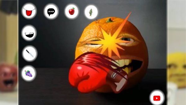2、点击这些图标橙子会发出各种滑稽的声音,点击橙子会出现拳头暴打橙子,整个过程即解压又快乐。