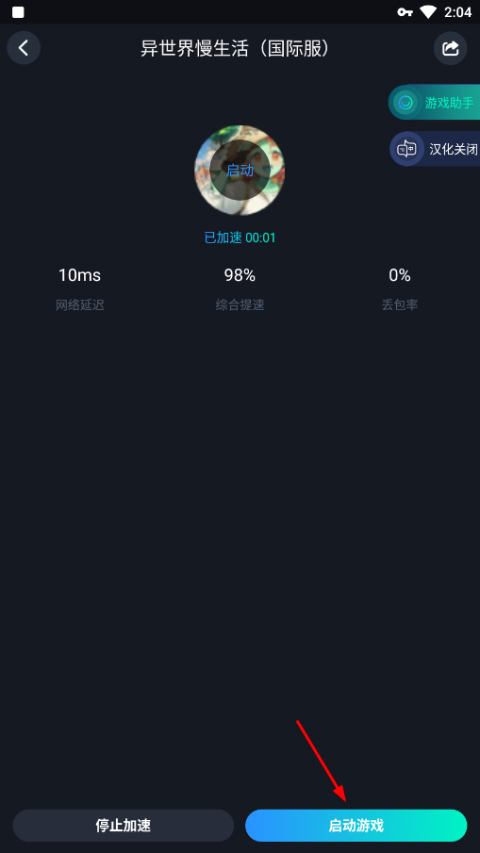 1、在本站下载异世界慢生活国际版,游戏需加速器启动,打开CC加速器,找到该游戏,然后点击右侧加速;